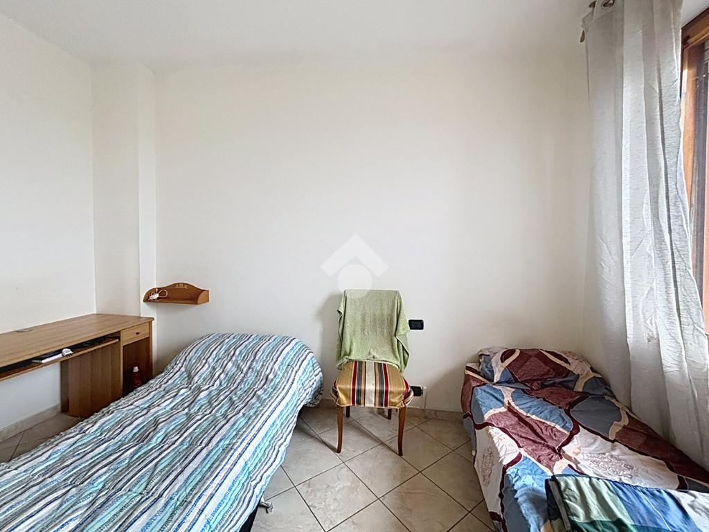 La zona notte, ben separata, ospita due camere da letto, di cui una matrimoniale dalle generose dimensioni, ideali sia per una giovane coppia sia per una famiglia. Il bagno, finestrato e dotato di doccia, garantisce praticità e funzionalità.