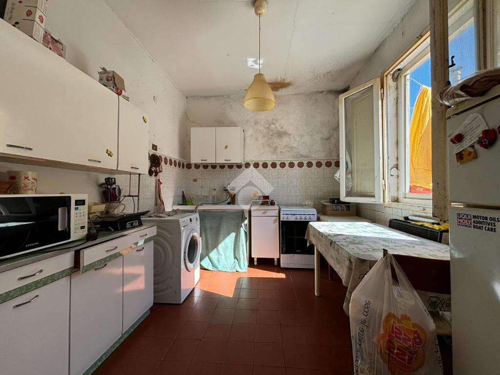 L'ingresso ci accompagna direttamente nella zona giorno composta da cucina semiabitabile, sala pranzo con accesso ad un comodo balcone, dal soggiorno e dal bagno dotato di doccia e finestra.