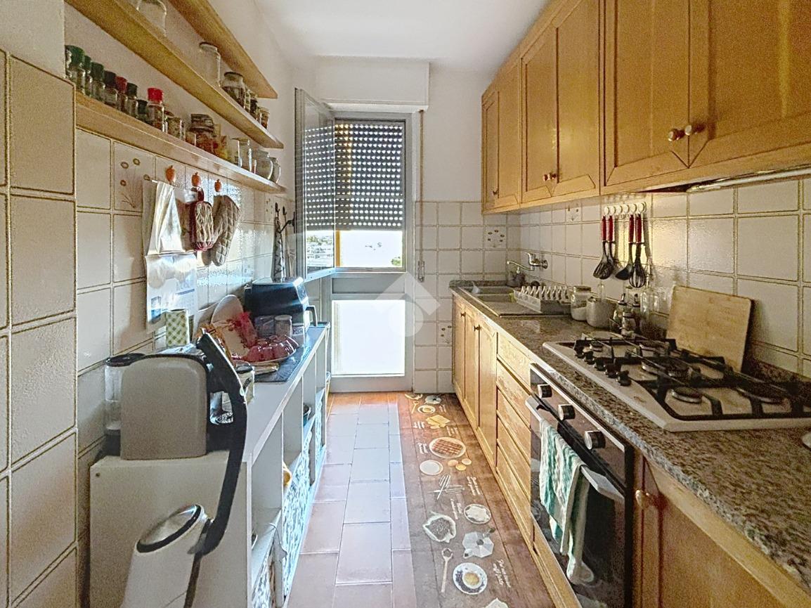 A completare la parte giorno è presente un angolo cottura separato, funzionale e ben organizzato. La zona notte offre tre camere da letto e un bagno finestrato con doccia. La soluzione è inoltre arricchita da posto auto, garage e cantina, elementi sempre più rari e preziosi in contesti centrali.