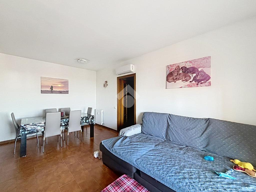 L’immobile, in buone condizioni, si apre su un ingresso che conduce direttamente alla luminosa zona giorno open-space, composta dalla sala da pranzo e dal soggiorno, con accesso a un pratico balcone verandato ideale per essere sfruttato tutto l’anno.